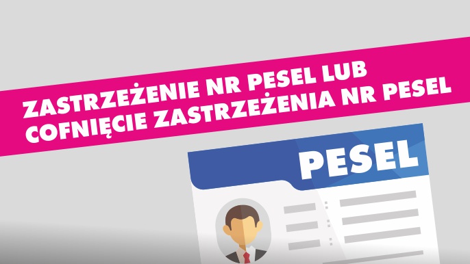 Od 29-11-2023 r. możesz sprawdzić jak zastrzec swój numer PESEL w procedurze Zastrzeżenie numeru PESEL lub cofnięcie zastrzeżenia numeru PESEL. Zastrzeżenie numeru PESEL ma na celu ochronę przed kradzieżą tożsamości. Po zastrzeżeniu, instytucje takie jak banki, firmy pożyczkowe, operatorzy telekomunikacyjni czy notariusze są zobowiązane do weryfikacji statusu numeru PESEL przed podjęciem określonych działań.
